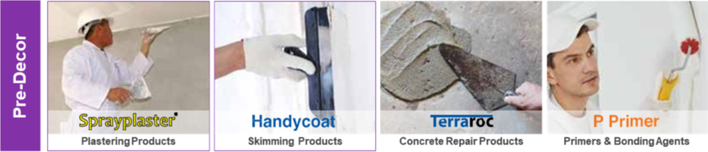 Terraco manufactures proprietary products that are marketed and distributed globally, including the extremely popular range of Handy coat surface preparation solutions, globally certified energy efficient thermal insulation systems including Terraco EIFS Alpha, Polar and Perma, long-life decorative wall finishes under the Terracoat and Terralite ranges, renders such as Sprayplaster™, a comprehensive waterproofing and tiling range, acoustic ceiling systems, flooring systems such as Addagrip Resin Bound Surfacing Systems, Flexipave Sports Flooring Systems, Concrete Effect Finishes and more.